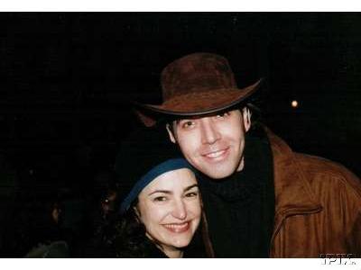 Marla Schaffel and James Barbour outside the Brooks Atkinson Theatre during the Broadway run of Jane Eyre.